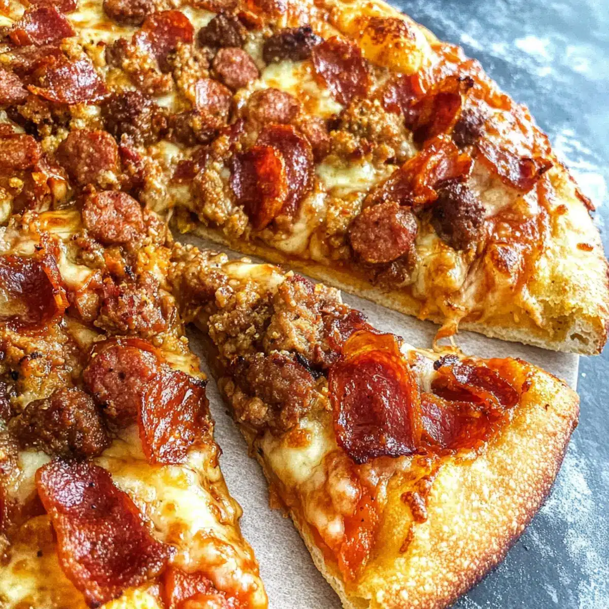 These Carnivore Pizza make-ahead options are a lifesaver for busy home cooks! You can prepare the crust up to 24 hours in advance by baking it and then allowing it to cool completely before wrapping it tightly in plastic wrap and refrigerating. The meat toppings, like the cooked sausage and crispy bacon, can also be prepared up to 3 days ahead, stored in separate airtight containers in the fridge. When you’re ready to enjoy your pizza, simply assemble the ingredients and bake for about 10-15 minutes at 350°F until the cheese is bubbly. This way, you’ll have a delicious, hearty meal ready in no time, without sacrificing flavor or quality!