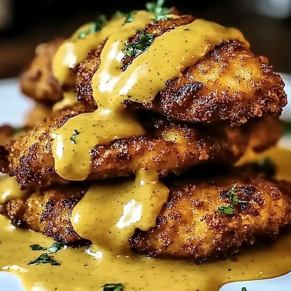 Crispy Pretzel Chicken with Mustard-Cheddar Bliss