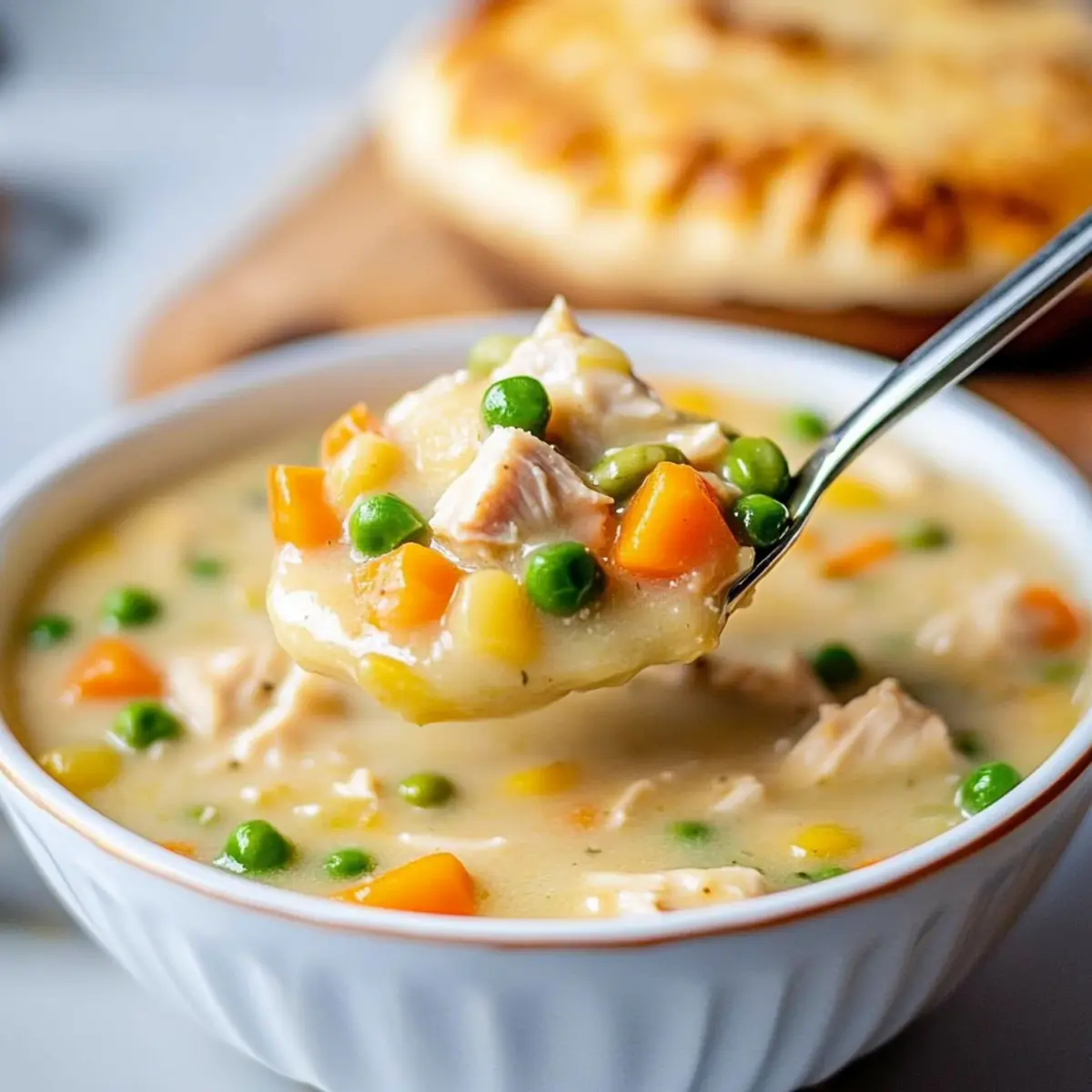 Once the soup is hot and bubbling gently, remove it from the heat. Ladle generous portions of your Chicken Pot Pie Soup into bowls and serve it warm. For an extra treat, pair it with crusty ciabatta bread to soak up the delicious broth, making every bite a satisfying experience.