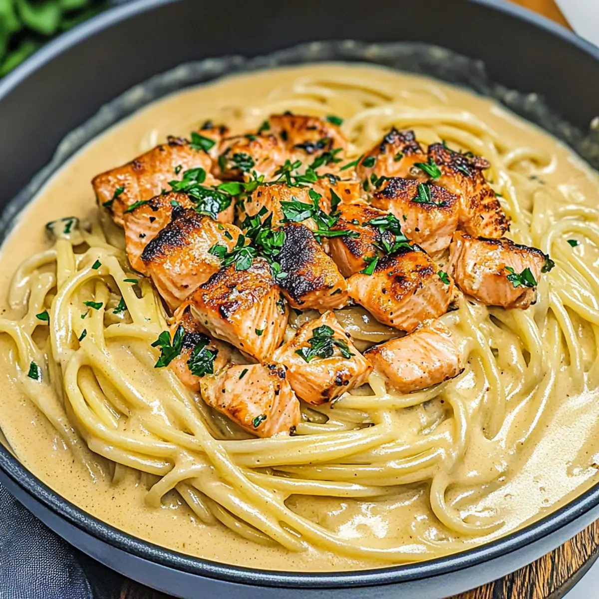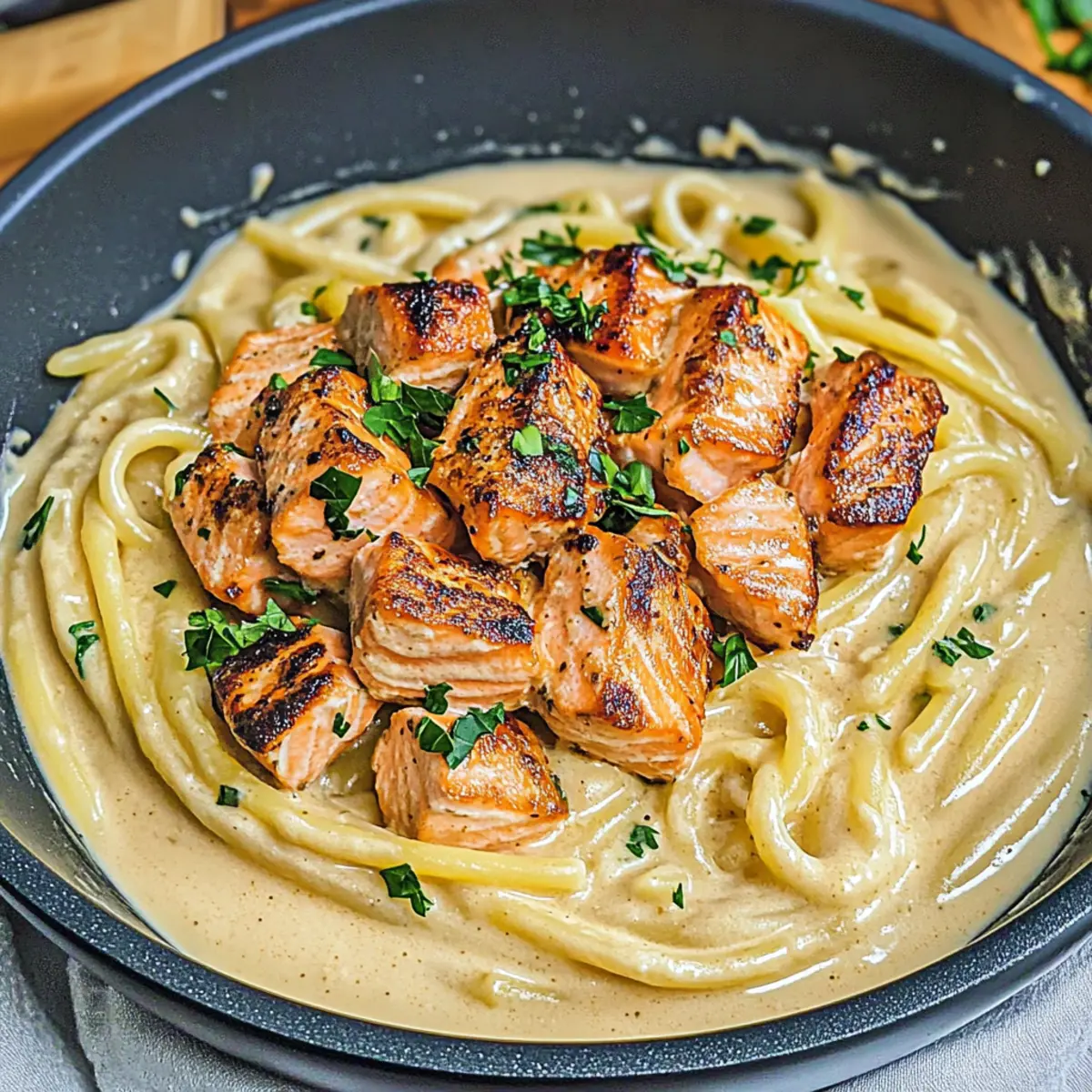 - Protein Swap: Replace salmon with cooked chicken or shrimp for a tasty twist. Both options provide a satisfying protein source that pairs well with the creamy sauce.