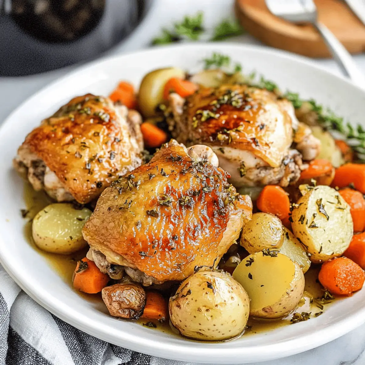 This Crock Pot Chicken and Potatoes recipe is a fantastic time-saver for busy home cooks! You can prep the vegetables (baby potatoes, carrots, and diced onion) up to 24 hours in advance; simply store them in an airtight container in the refrigerator to keep them fresh. For even deeper flavor, you can season the chicken thighs ahead of time and let them marinate overnight. When you’re ready to cook, layer the veggies in the slow cooker, add the seasoned chicken on top, and pour in the chicken stock as directed. This way, you’ll enjoy a heartwarming meal with minimal effort and maximum flavor, proving that make-ahead magic can be just as delicious!