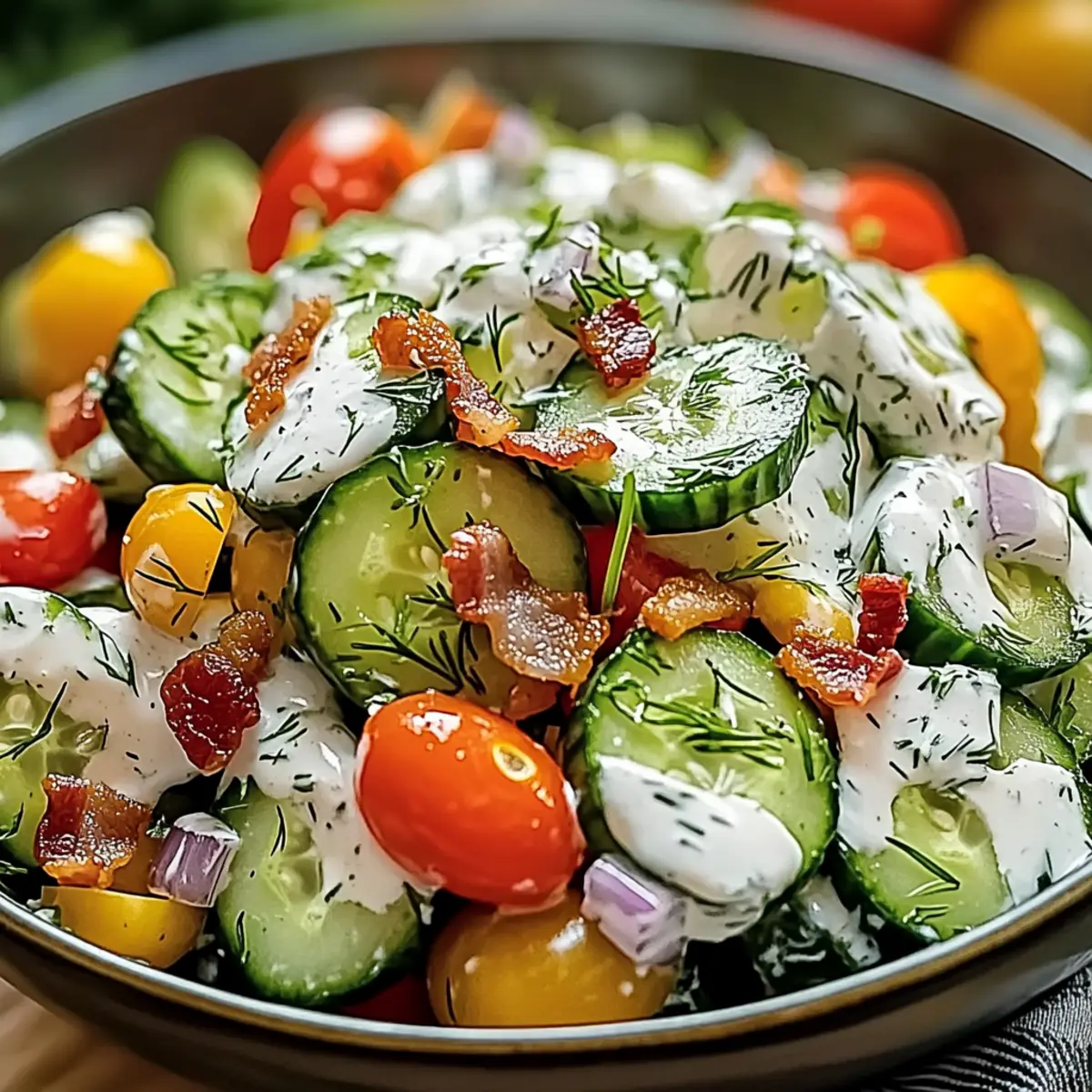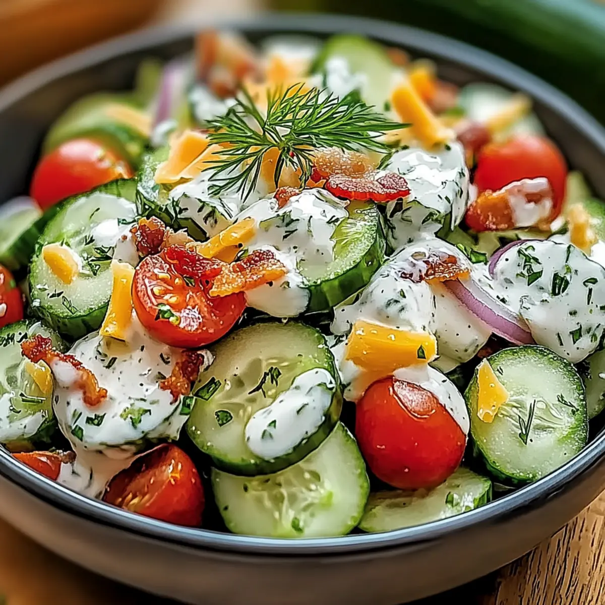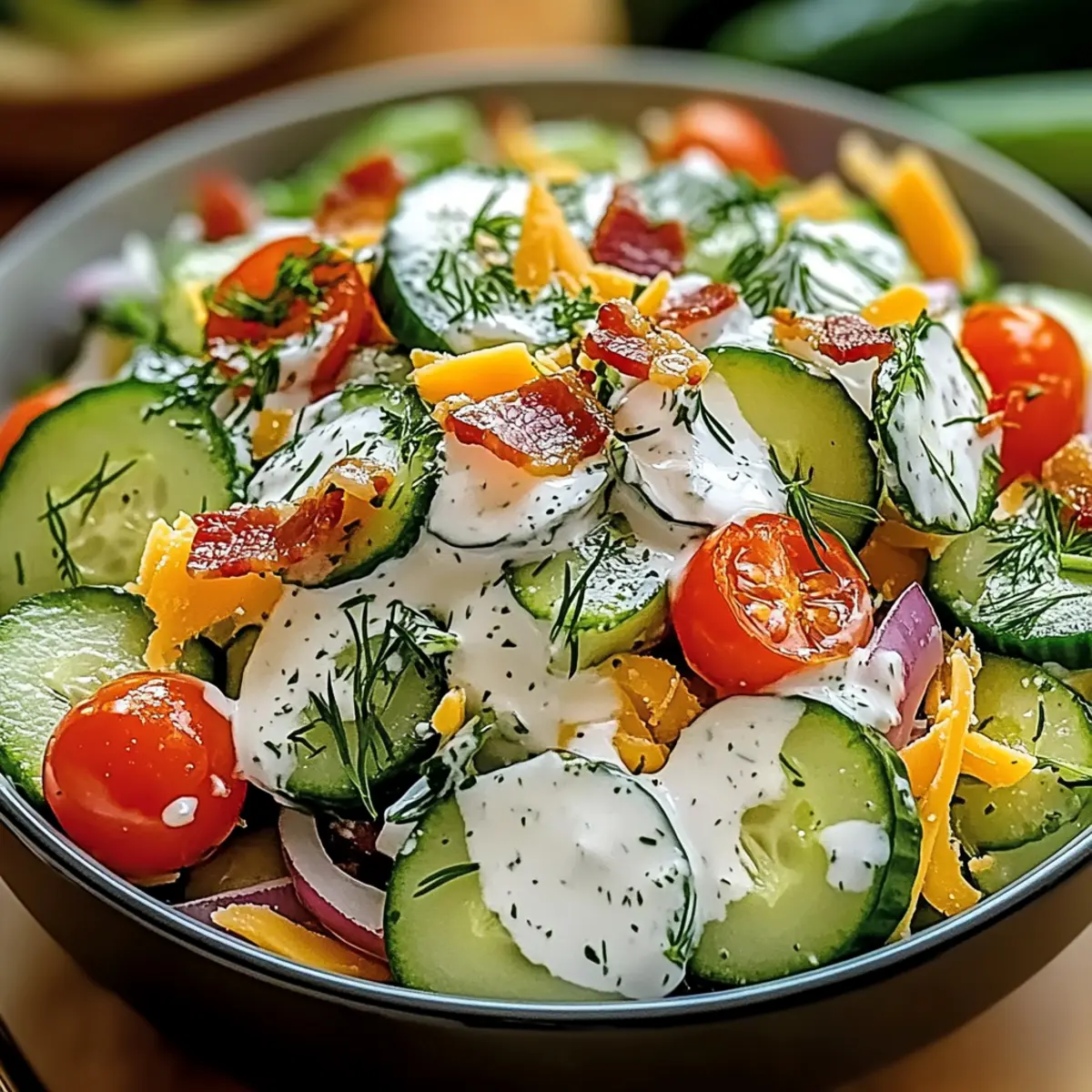 Refreshing and Flavorful: This salad combines crunchy cucumbers and tangy ranch for a bright burst of flavor.