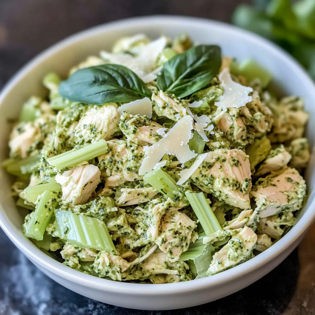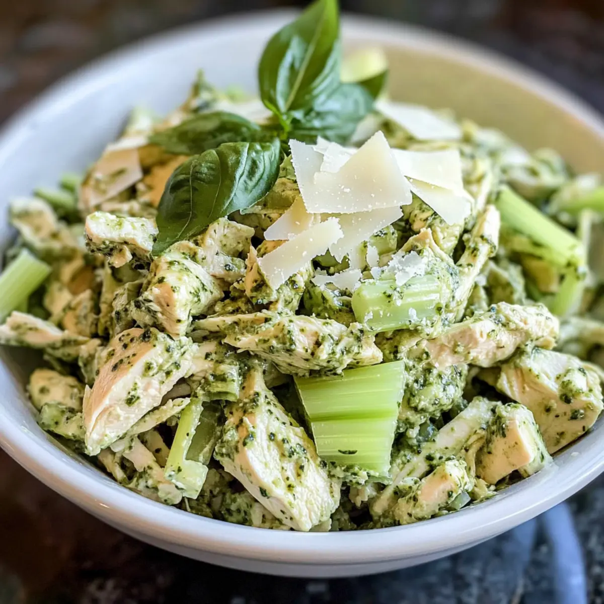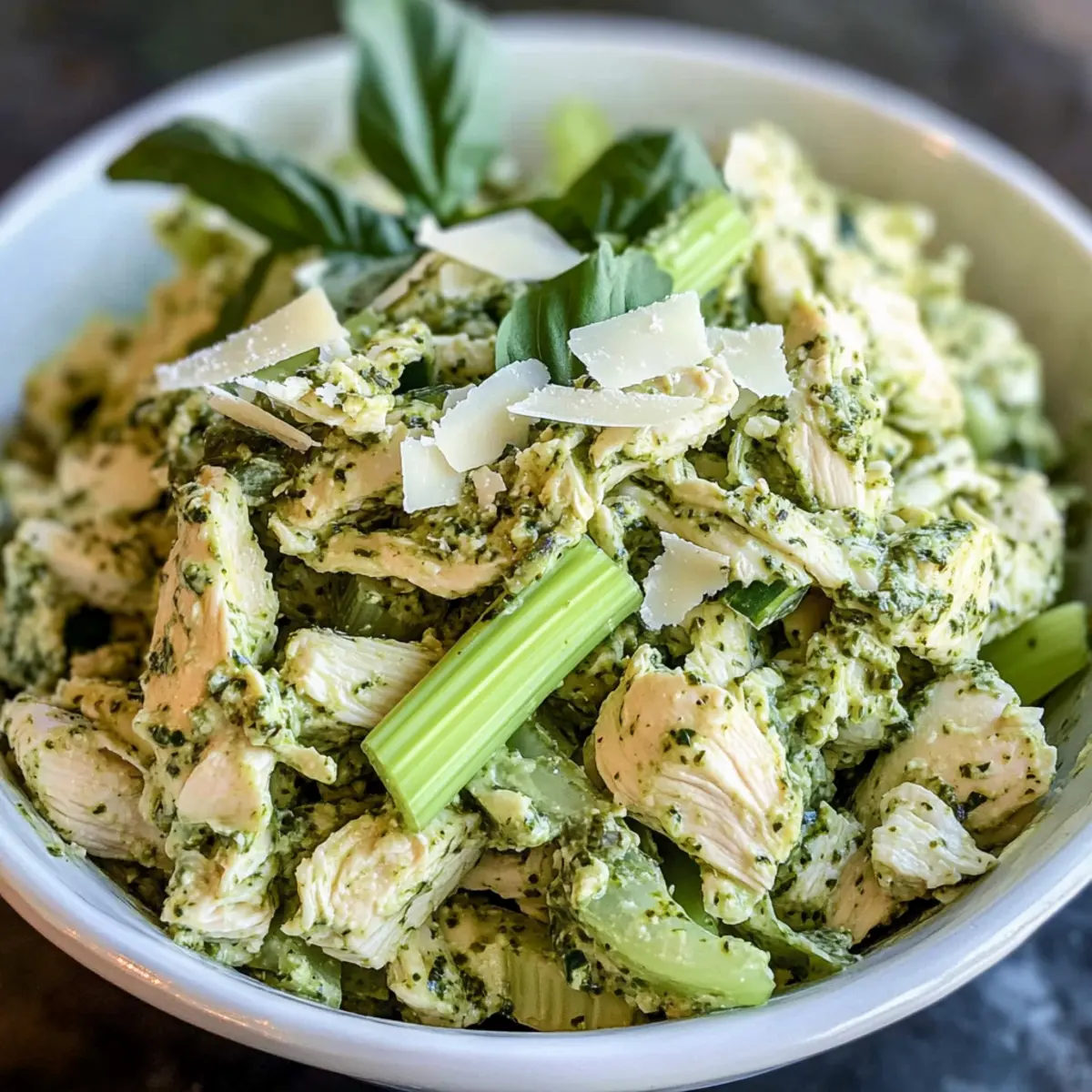 When you’re ready to serve, scoop the salad into your favorite wraps, onto whole-grain bread, or in a bowl alongside a fresh side salad. The creamy texture paired with the crunch from the celery will delight your taste buds. This Easy Pesto Chicken Salad is versatile and perfect for any mealtime!