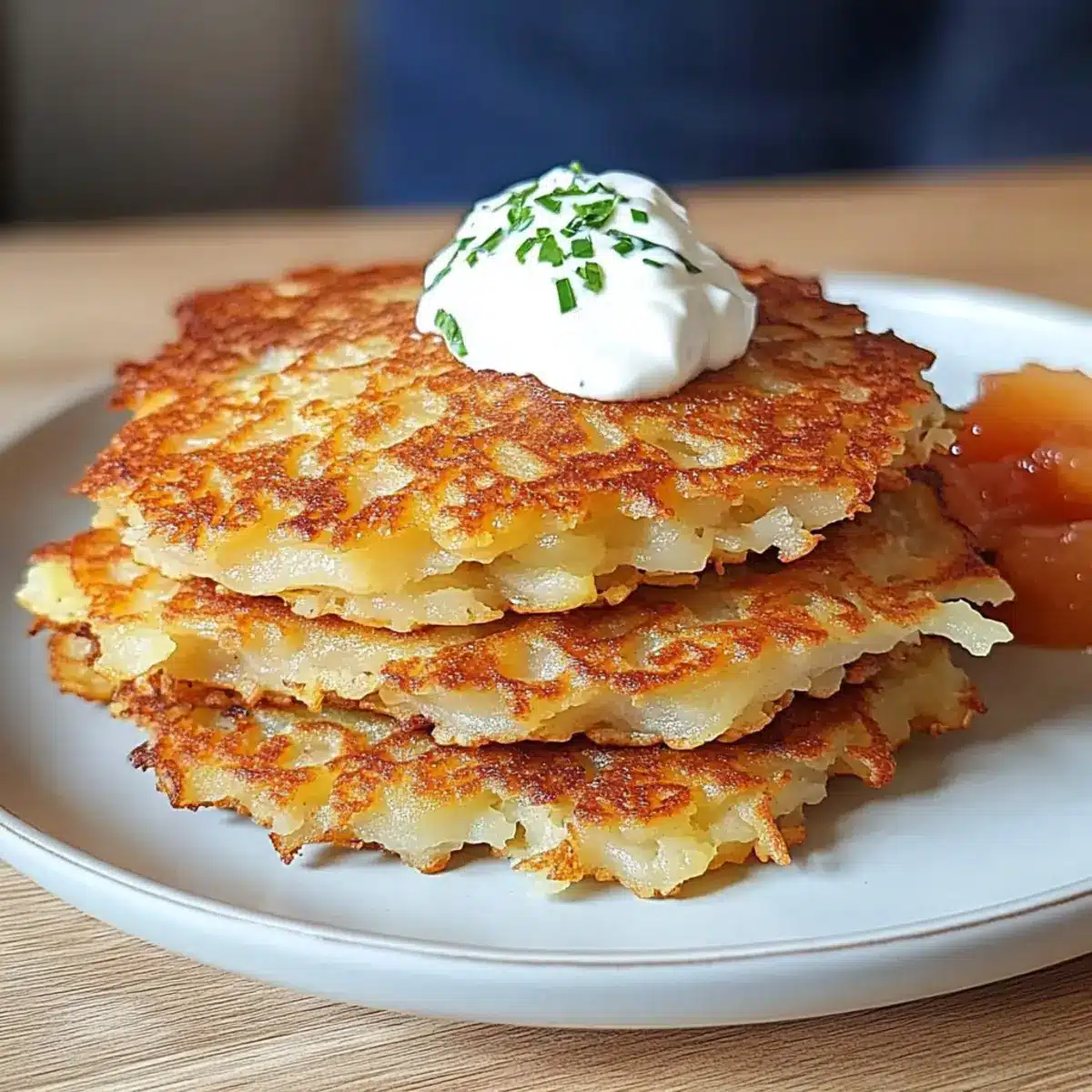 Herbed Quark: Scoop on some fresh herbed quark as a flavorful alternative to sour cream. You can mix in chives or dill for a delightful twist that enhances the pancakes’ flavor.
