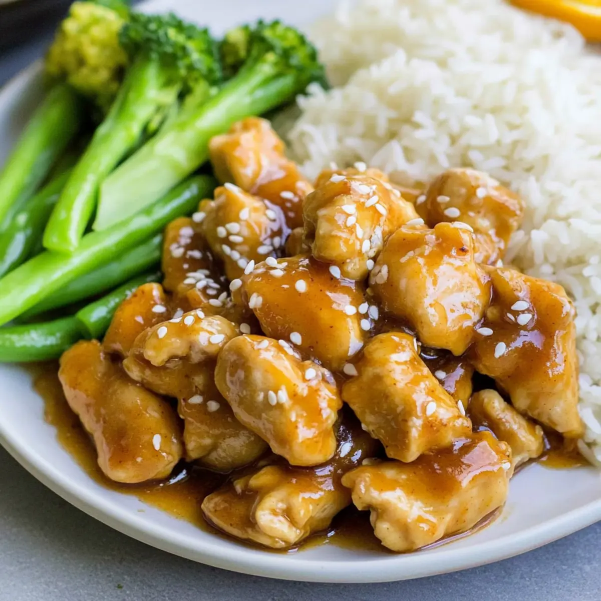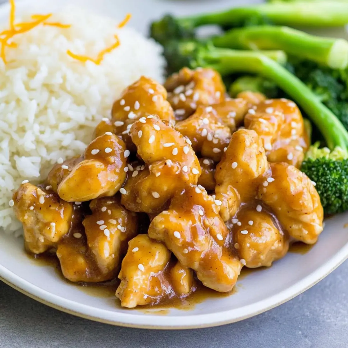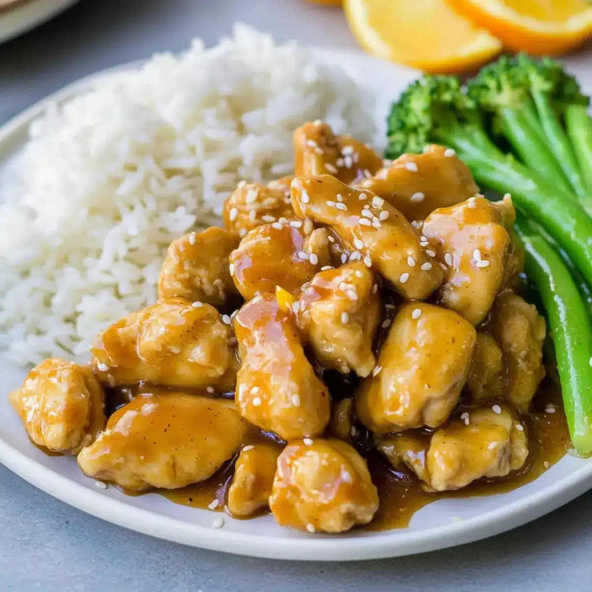 Coconut Rice: This subtly sweet rice perfectly balances the tangy orange chicken, adding a tropical twist to your meal. Its creamy texture harmonizes beautifully with the crispy chicken.