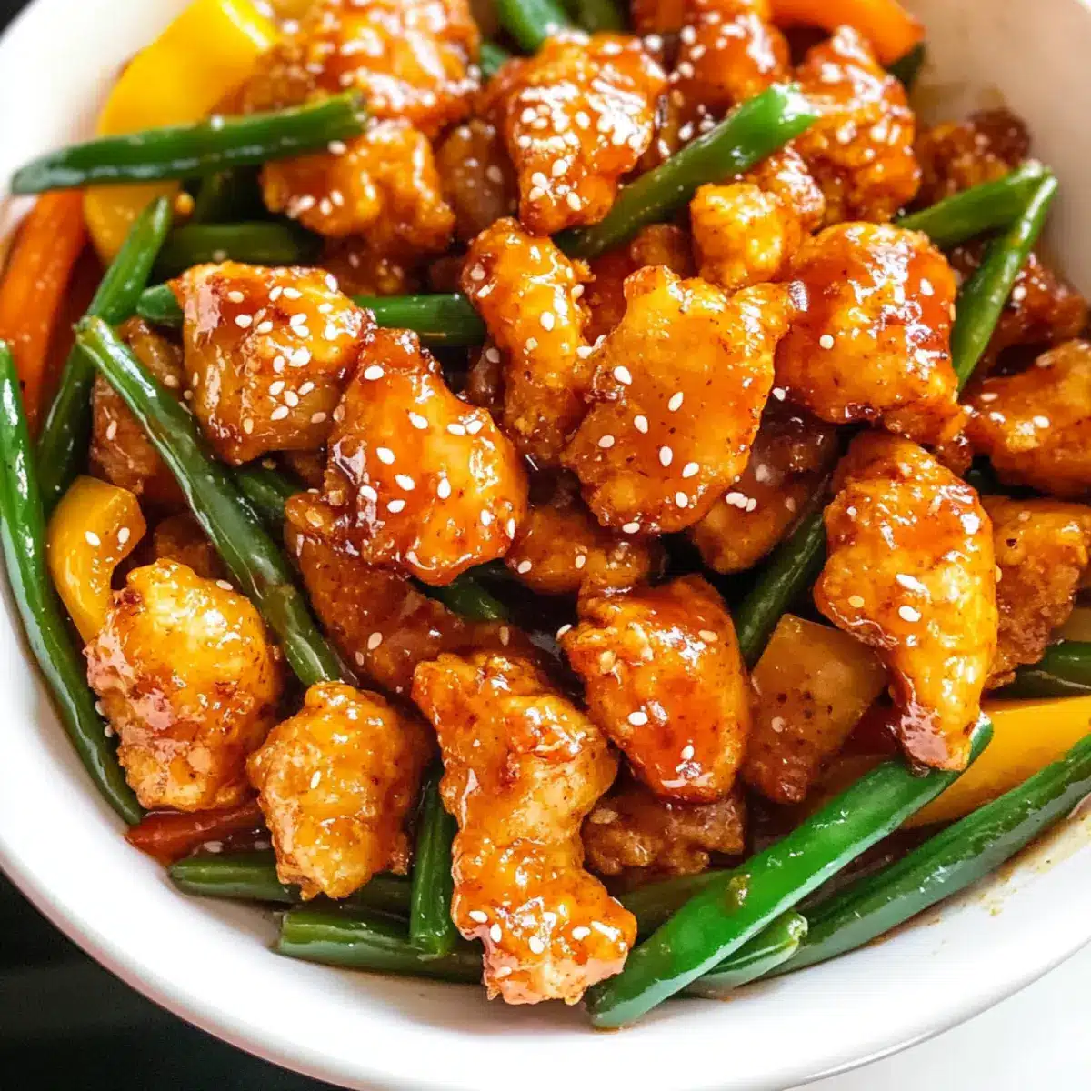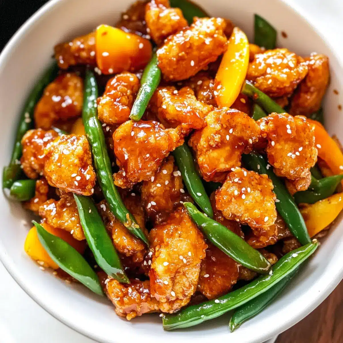 - Combine Everything: Toss the crispy chicken in the sauce and add sautéed vegetables.