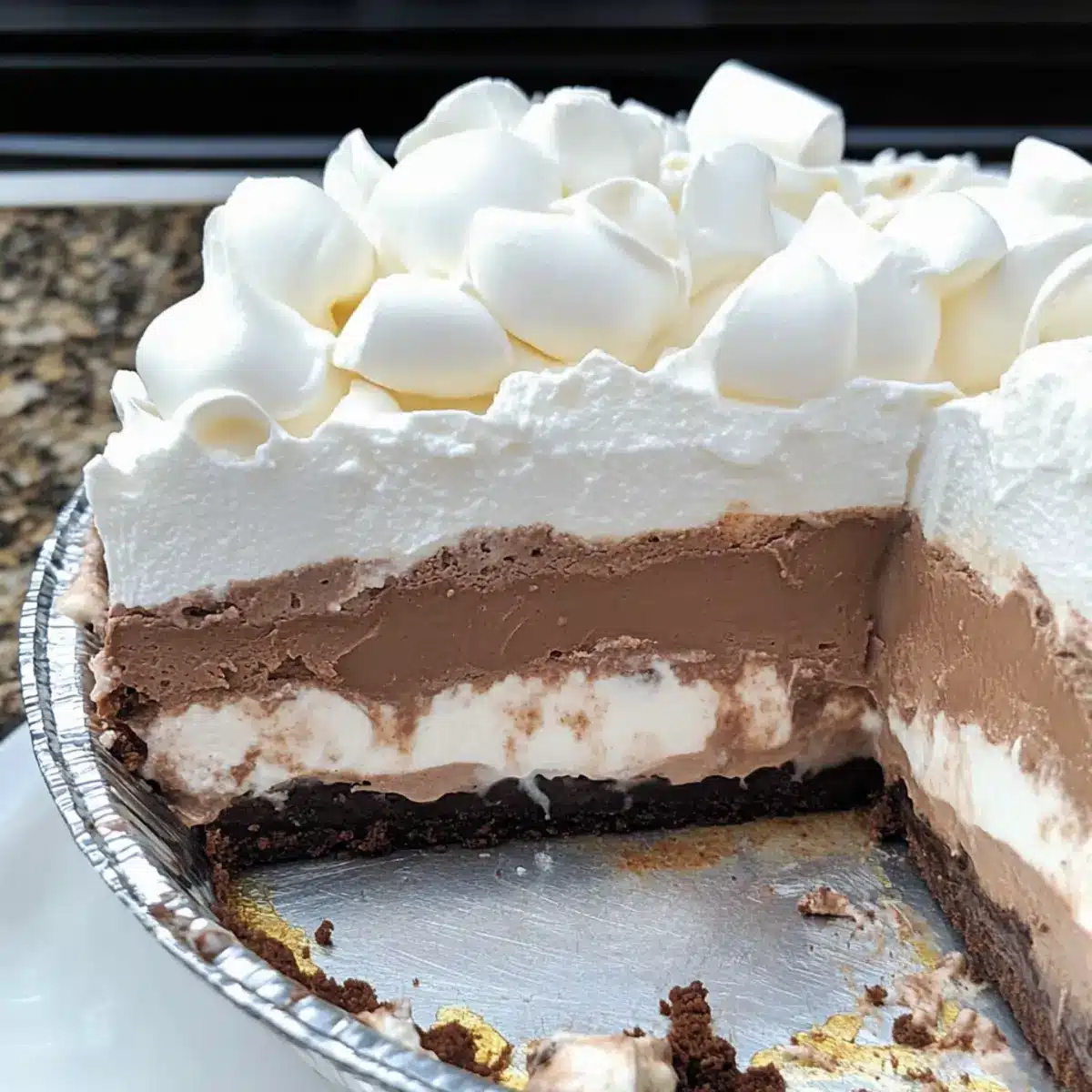 - In a medium bowl, whisk together instant chocolate pudding mix with milk until thickened. Stir in mini marshmallows and pour over the cheesecake layer, smoothing it out. Chill for at least 10 minutes.