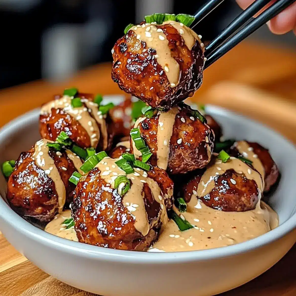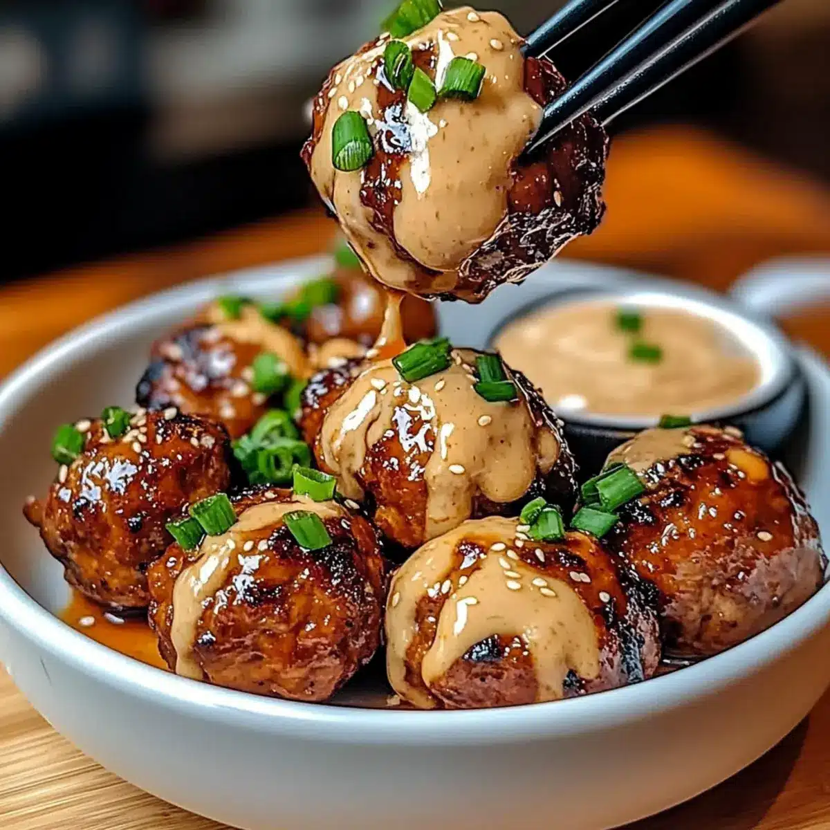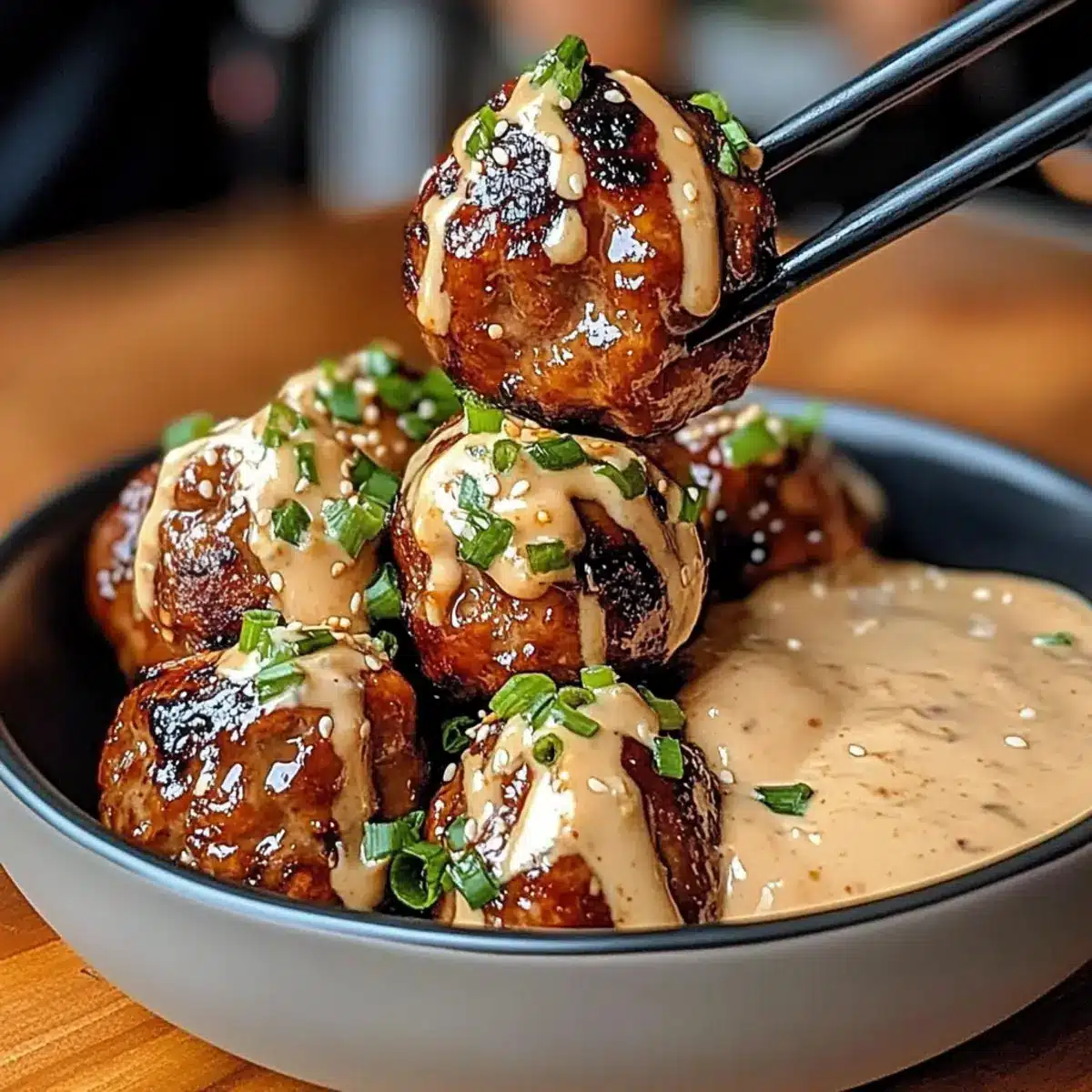 Delicious Korean BBQ Meatballs with Zesty Spicy Mayo Dip