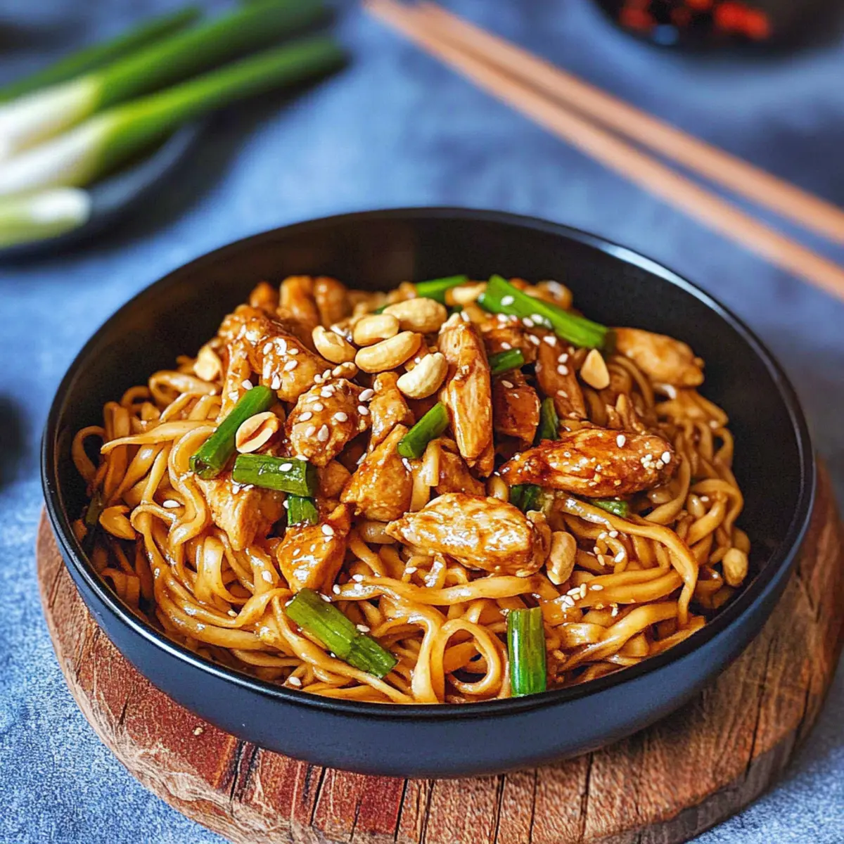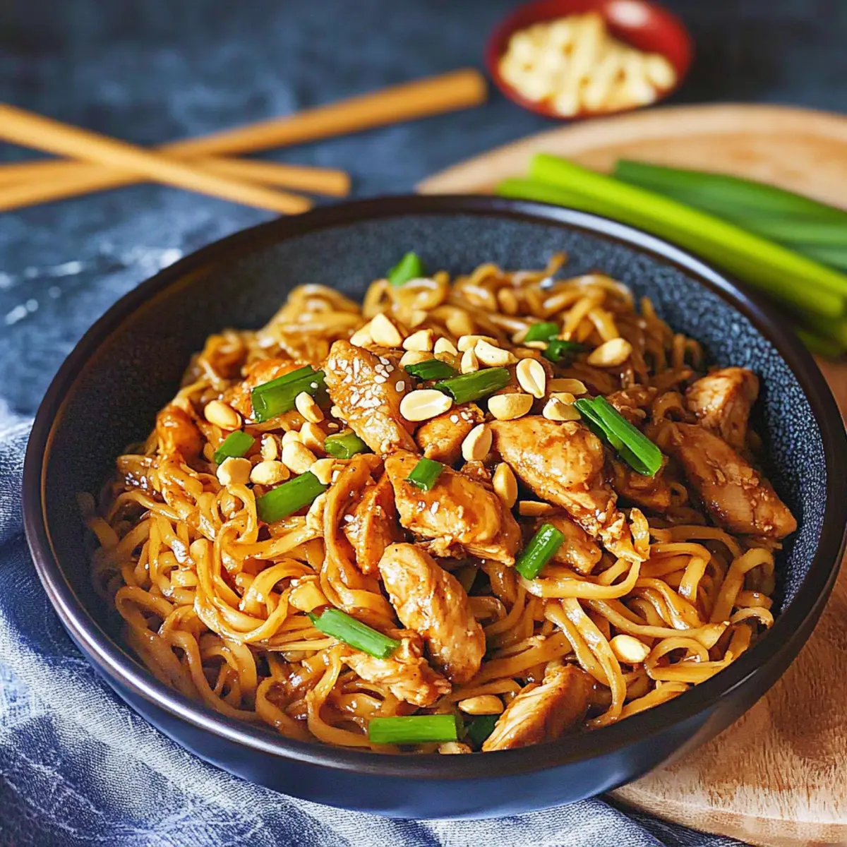 Texture Bliss: Revel in the contrast of tender chicken, chewy noodles, and crunchy peanuts that make every mouthful exciting!