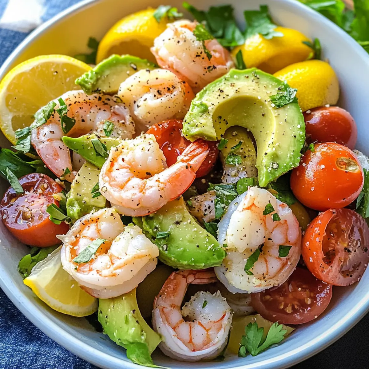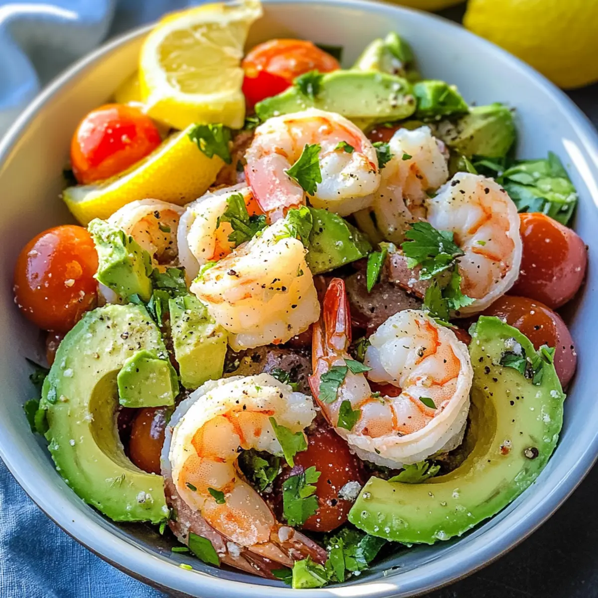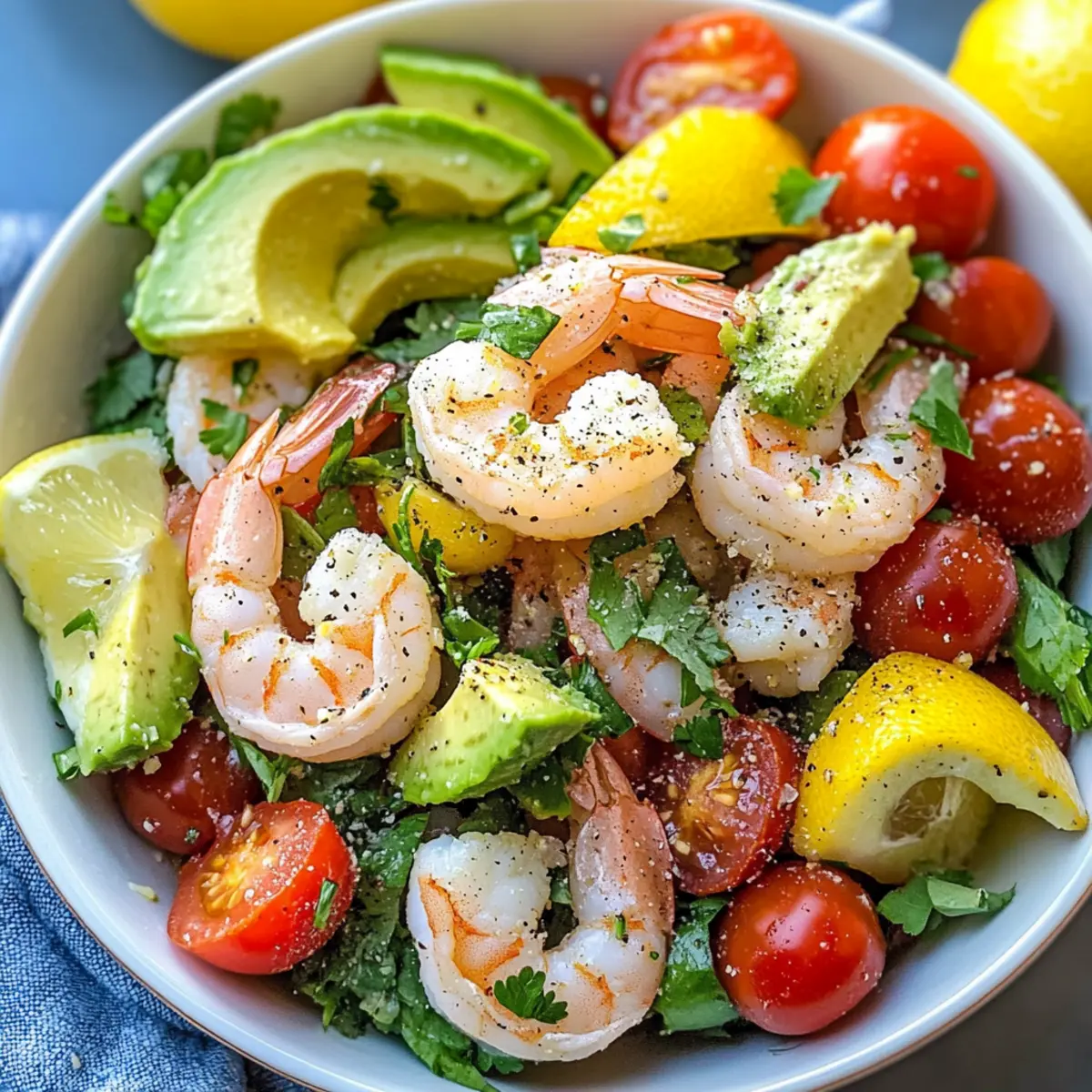 On a sun-soaked afternoon, I found myself rummaging through my fridge, craving something fresh and vibrant. That’s when I stumbled upon the perfect blend of ingredients: shrimp, creamy avocado, and juicy tomatoes—all asking to be united. This Lemony Shrimp, Avocado, and Tomato Salad was born from that spontaneous moment and has since become a go-to for those pressed for time but seeking a meal that’s both satisfying and protein-rich. Not only is it simple to whip up, but it’s also ideal for meal prep, making it a delightful option for lunch or a crowd-pleasing side for your next gathering. Curious how such fresh ingredients can come together in a burst of flavor? Let’s dive into this delicious recipe!