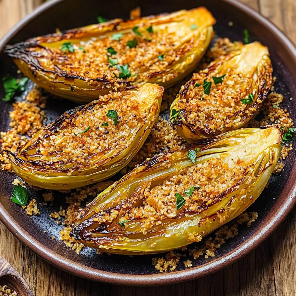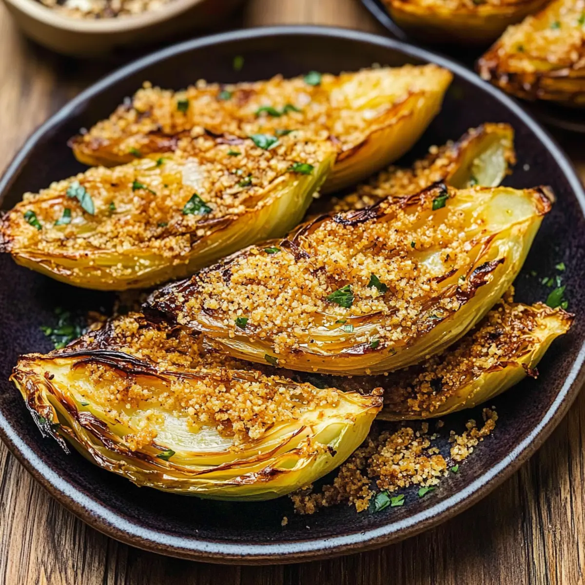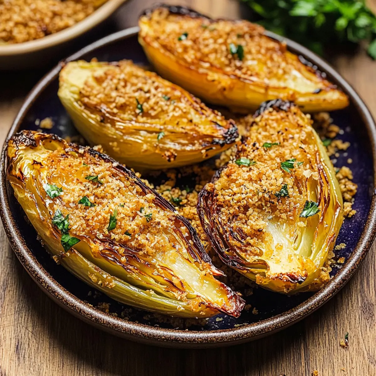 - Remove the cabbage from the oven, sprinkle with toasted breadcrumbs, and garnish with parsley.