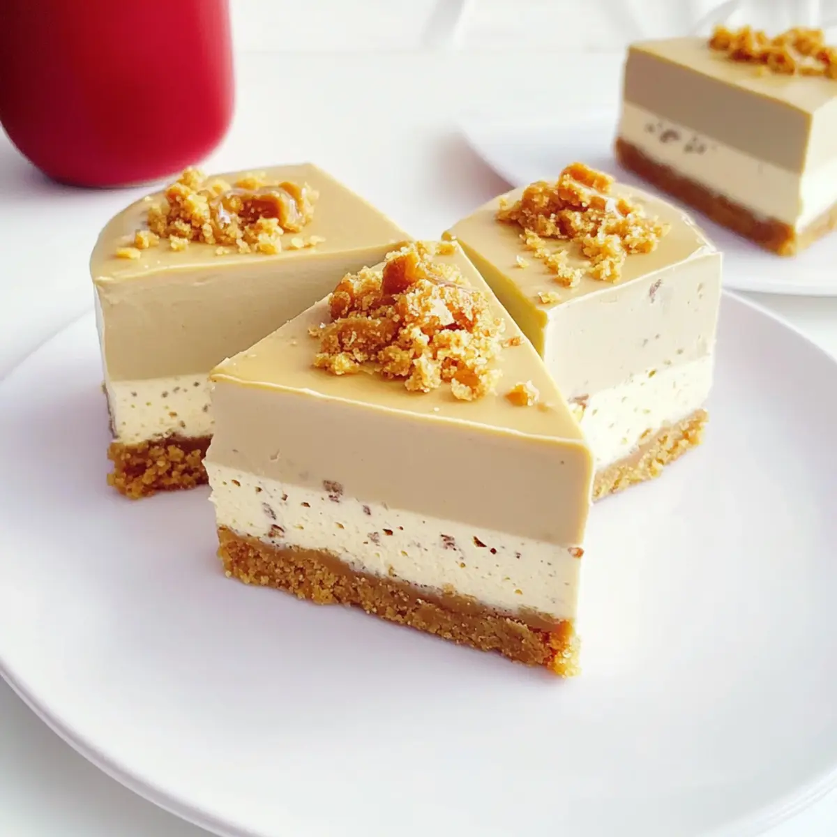 Begin by crushing the caramel biscuits into fine crumbs using a food processor or a rolling pin. In a mixing bowl, combine the biscuit crumbs with melted unsalted butter until well-coated. Press this mixture firmly into the bottom of a lined 8-inch springform pan to create a solid base. Chill in the refrigerator for about 10 minutes to set.