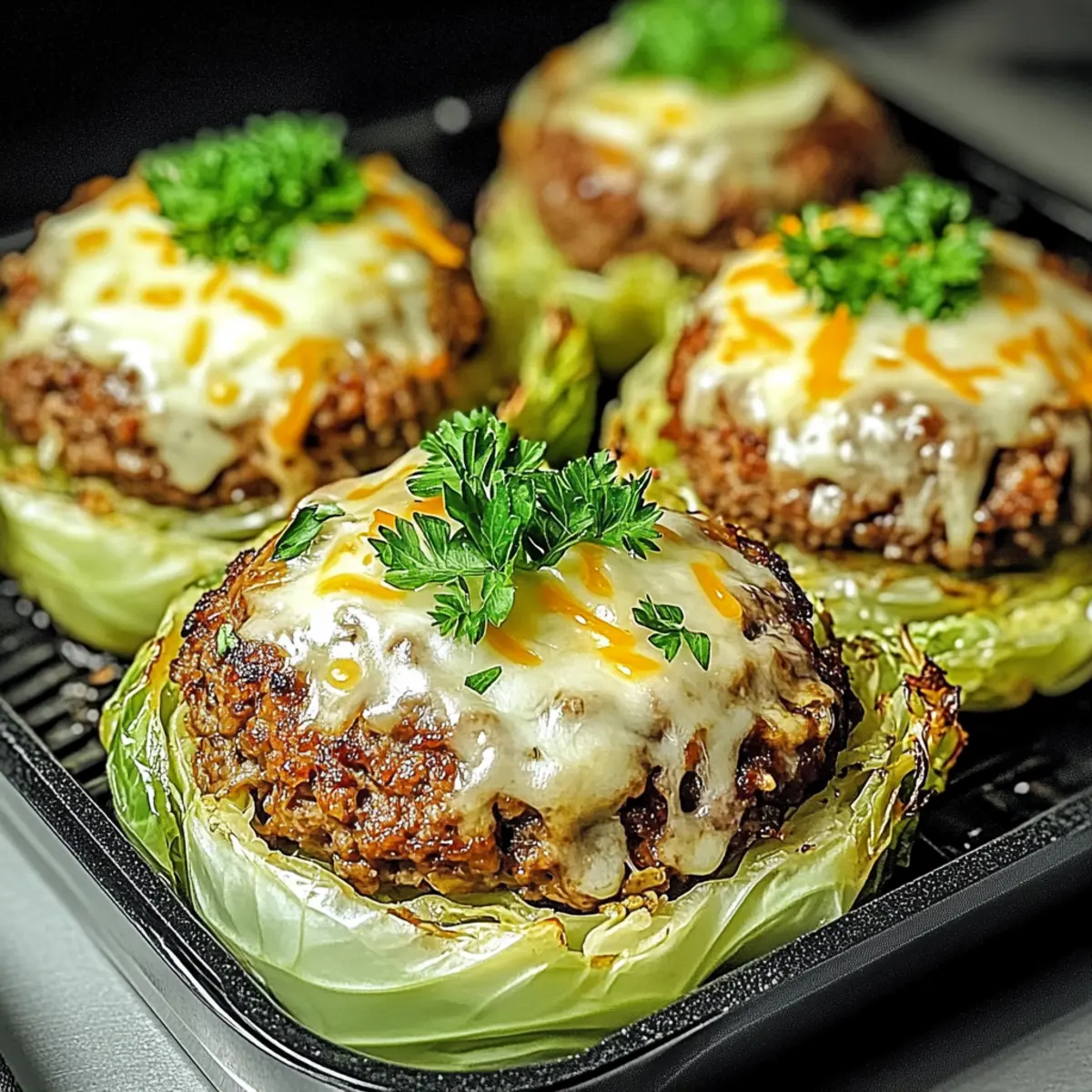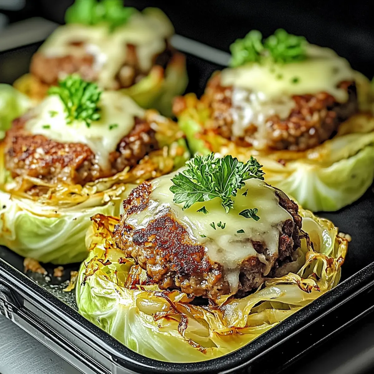 These Oven-Baked Cabbage Burgers are perfect for meal prep enthusiasts looking to save time during busy weeknights! You can prepare the meat mixture up to 24 hours in advance; just mix together the ground meat, onions, garlic, spices, and rest of the ingredients, then refrigerate it in an airtight container. The cabbage can also be sliced up to 3 days ahead—keep it in a sealed container to maintain freshness. When you’re ready to serve, simply assemble the burgers on cabbage slices, bake until cooked through, and broil with cheese for those irresistible melt-in-your-mouth moments. These simple steps ensure your burgers are just as delicious while cutting down on last-minute cooking time!