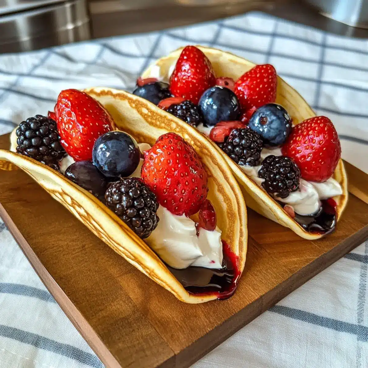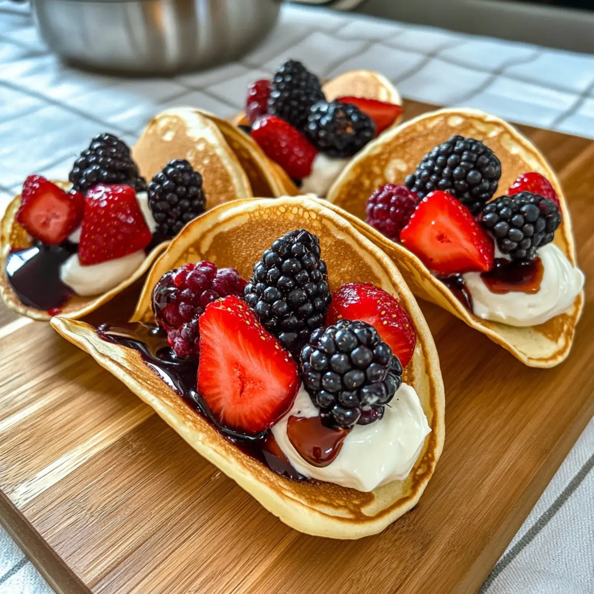 Serve the Pancake Tacos immediately while they are still warm for the best texture and flavor. Enjoy the delightful combination of fluffy pancakes, rich creamy filling, and fresh fruits, making breakfast a fun and delicious experience for the whole family!
