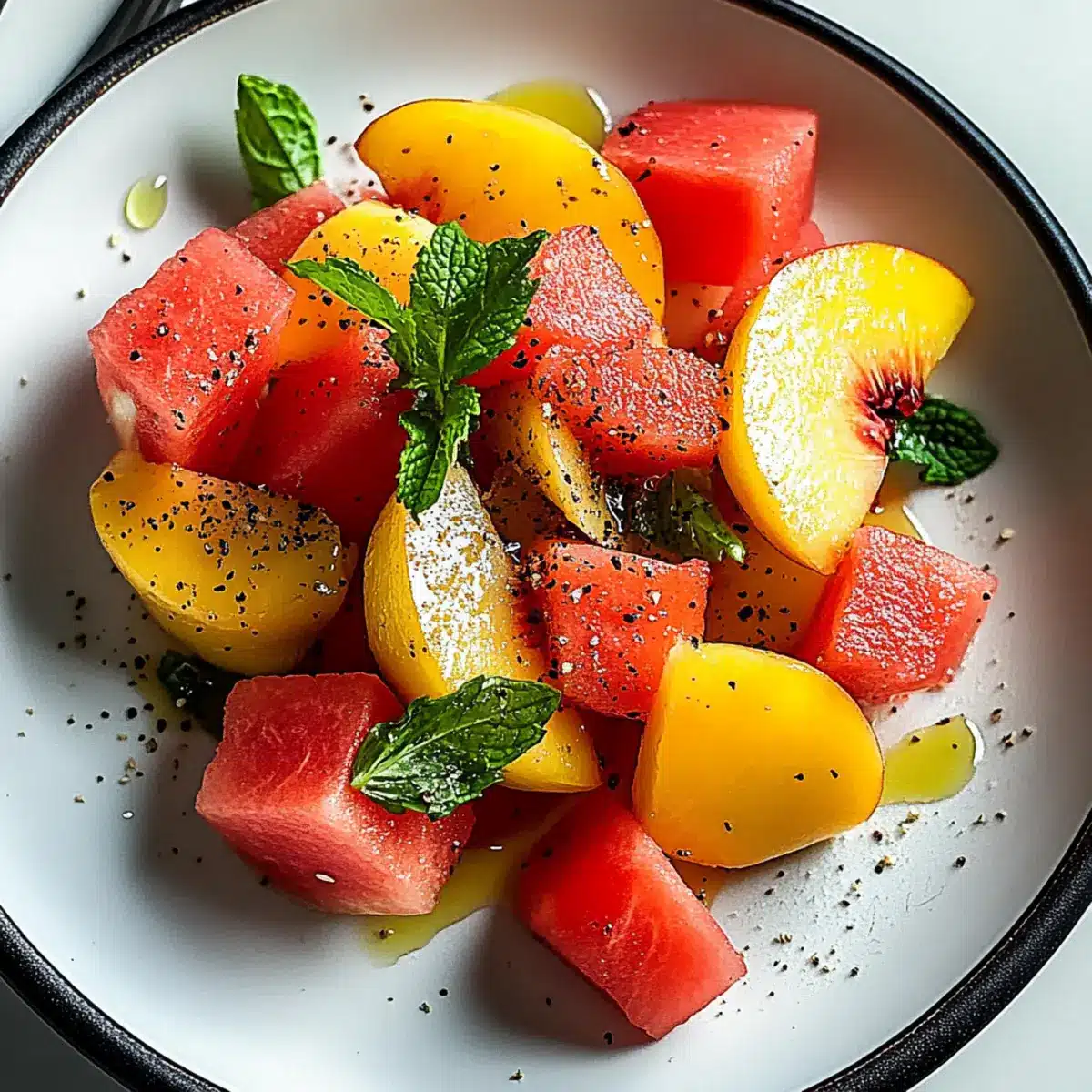Refreshing, this salad bursts with juicy flavors that perfectly capture summer’s essence. Quick to prepare, you can whip it up in just 10 minutes, making it ideal for last-minute gatherings. Hydrating, the combination of watermelon and peaches offers a delicious way to stay cool while enjoying nutrient-rich produce. Versatile, serve it as a side for grilled meats or enjoy it solo as a light lunch. For added excitement, consider incorporating crumbled feta for creaminess or even a splash of balsamic glaze for depth. Dive into this delightful dish today!