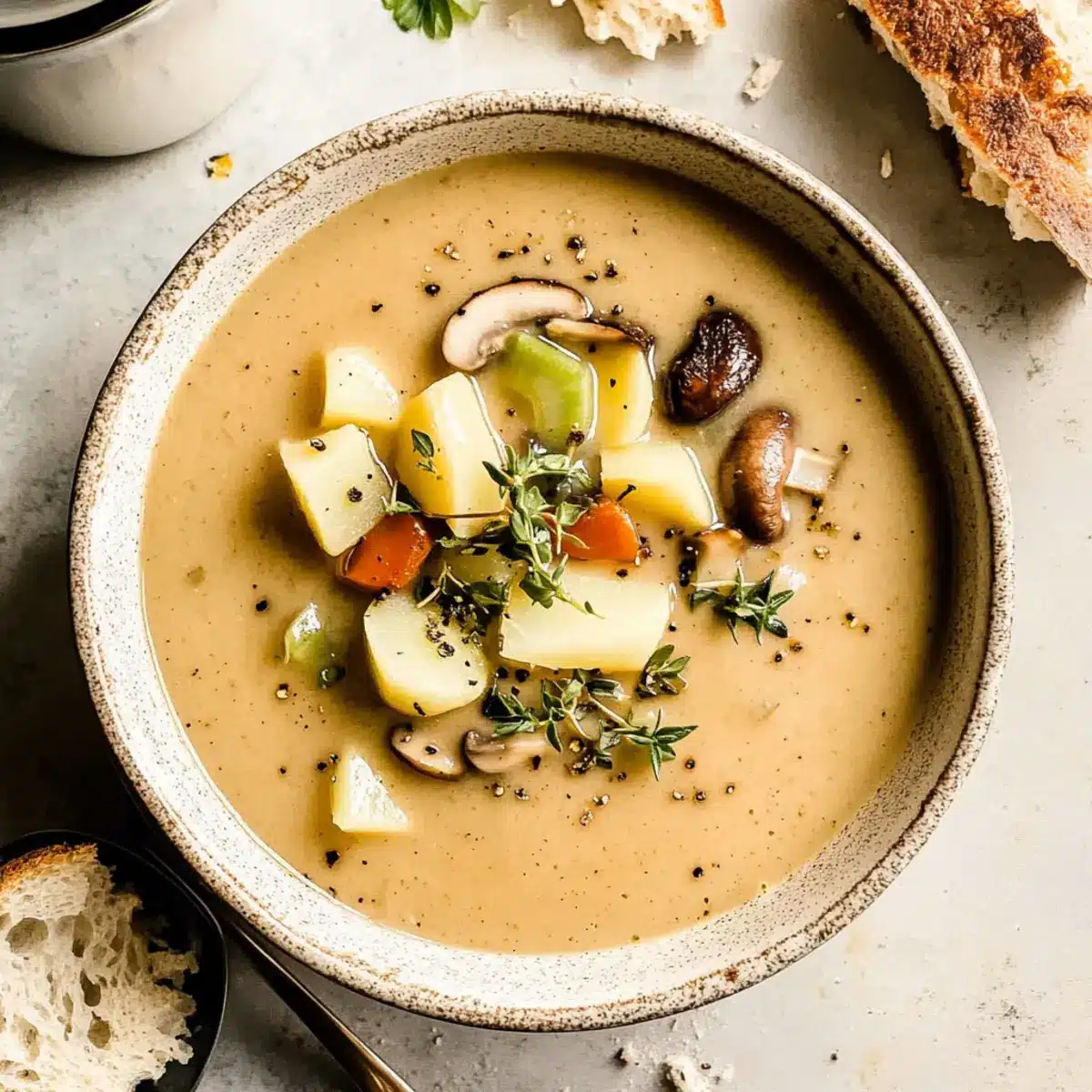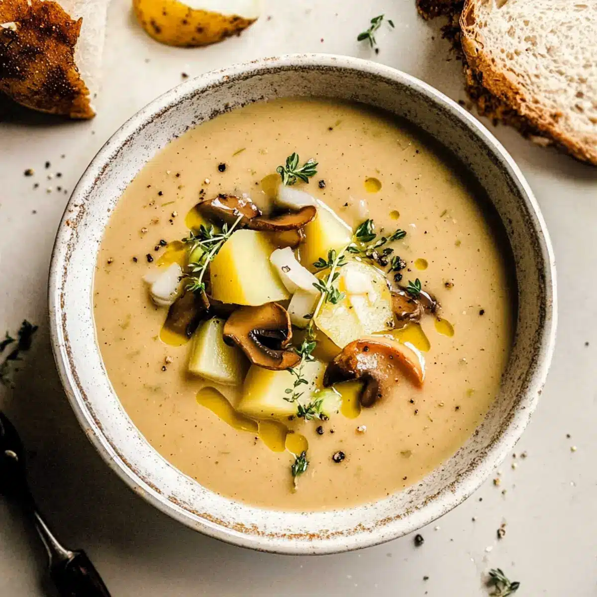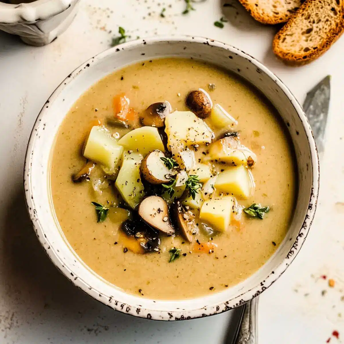 Stir in the peeled and cubed potatoes, followed by your high-quality vegetable broth and a splash of dry white wine if you’re using it. Bring the mixture to a gentle simmer, then cover the pot and cook for 15-20 minutes. Check occasionally, and the soup is ready when the potatoes are fork-tender, blending perfectly with the mushroom and herb flavors.
