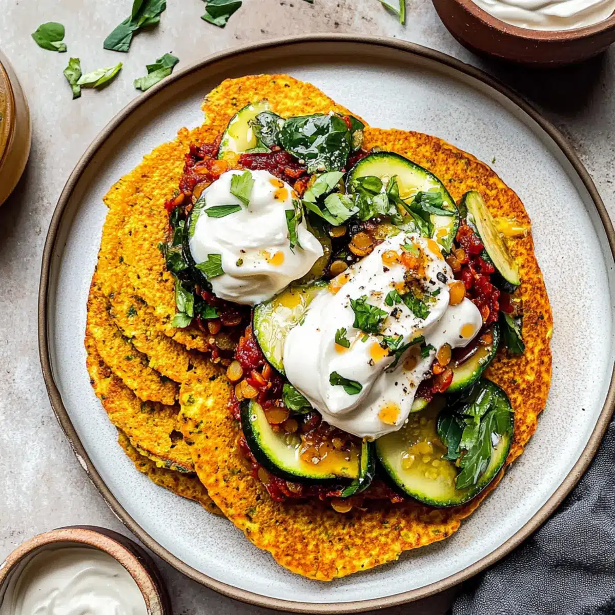 There’s nothing like a colorful spread to elevate your savory red lentil pancakes into a complete, mouthwatering meal.
