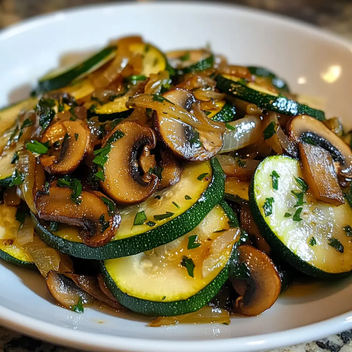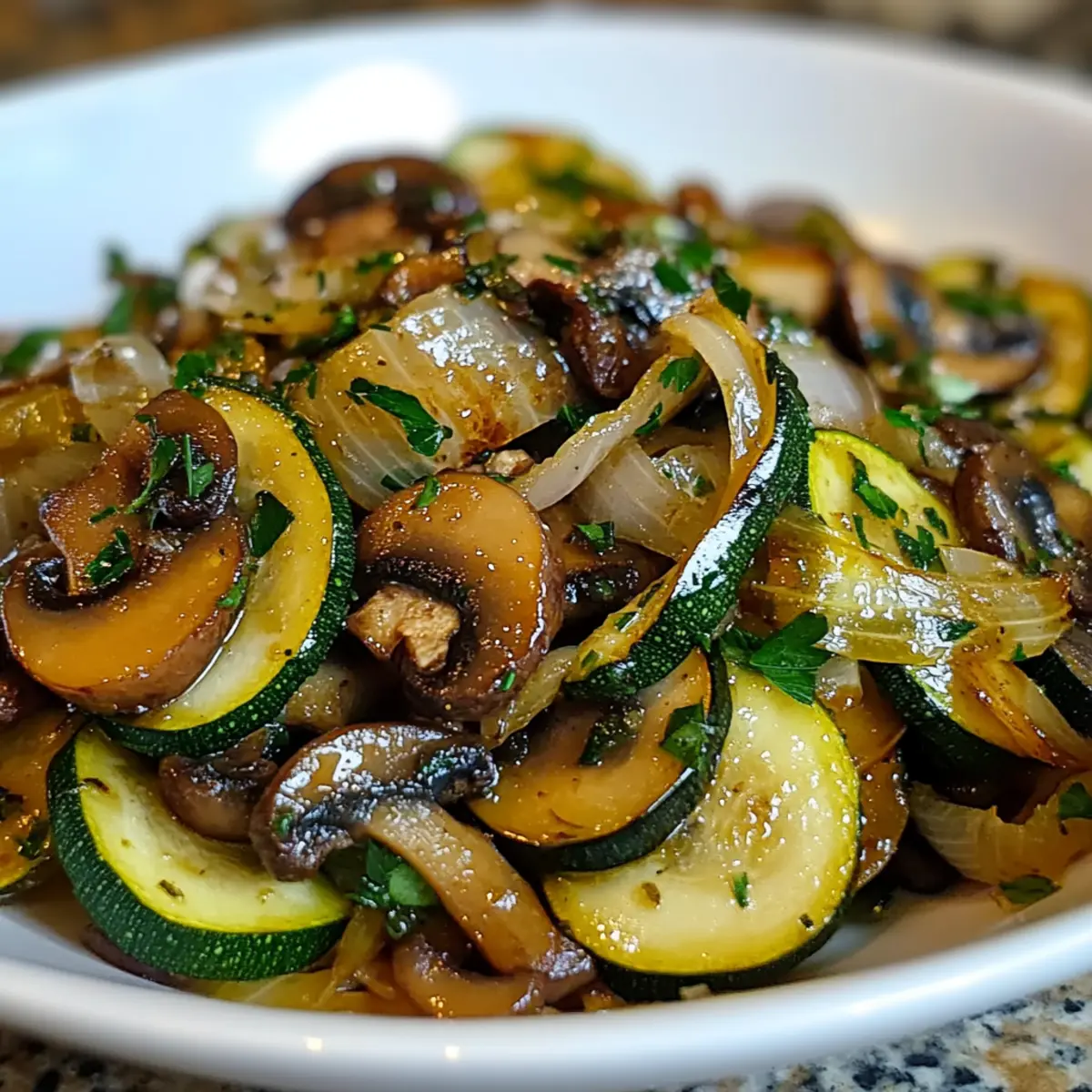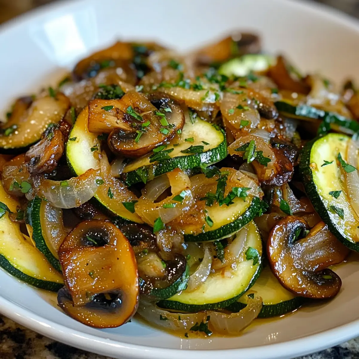Once the zucchini is perfectly cooked, remove the pan from the heat. Transfer the sautéed zucchini, mushrooms, and onions to a serving dish. If desired, garnish with freshly chopped parsley for a pop of color and flavor. Serve warm, and enjoy the delightful blend of textures and aromas that make this Sautéed Zucchini, Mushrooms, and Onions such a versatile and quick side dish.