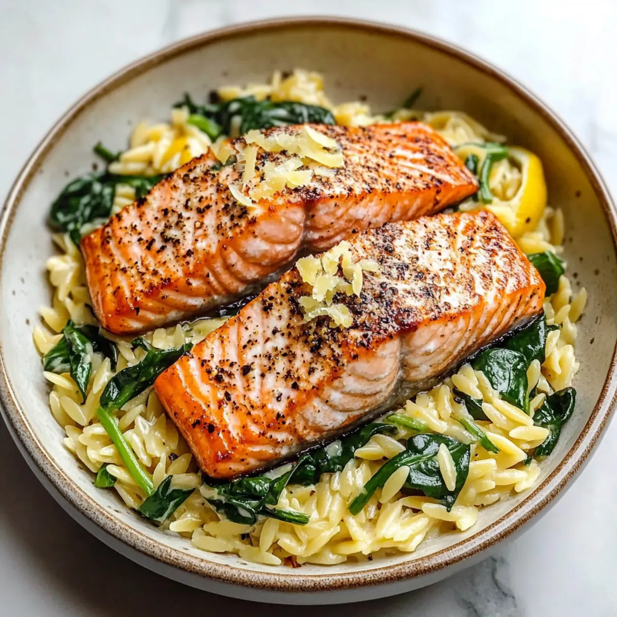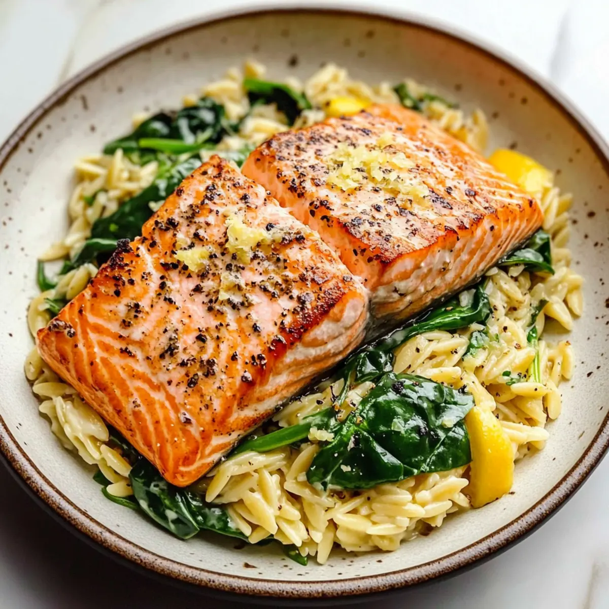 Spicy Kick: Add a pinch of red pepper flakes or a dash of hot sauce to the orzo for a fun heat element. The kick of spice contrasts beautifully with the rich salmon and creamy sauce.