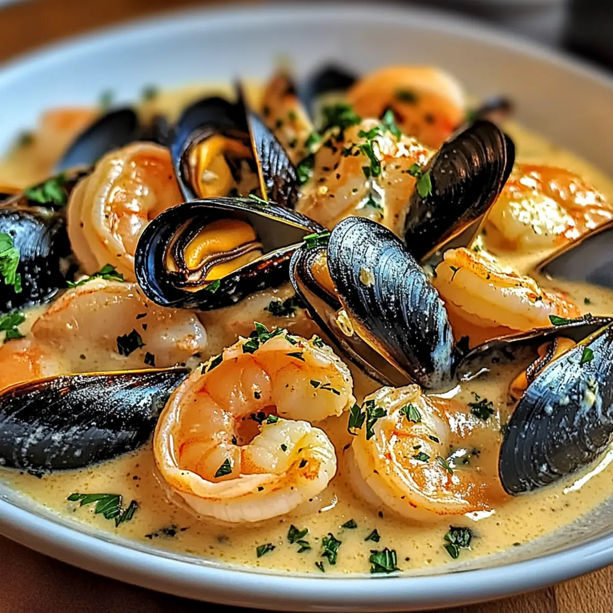 Delicious Shrimp and Mussels in Creamy Garlic Sauce at Home