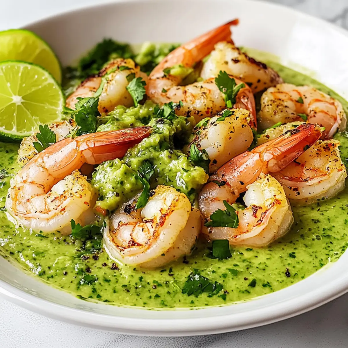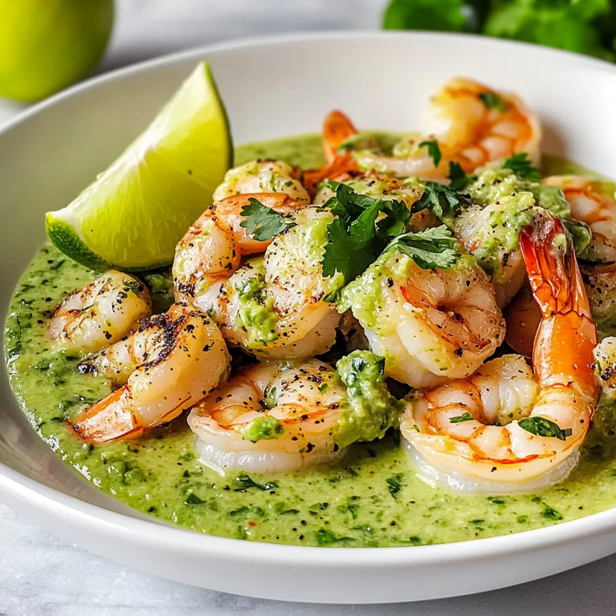 - Pour the creamy salsa into dipping bowls, place the cooked shrimps on top, and garnish with lime wedges and extra cilantro.
