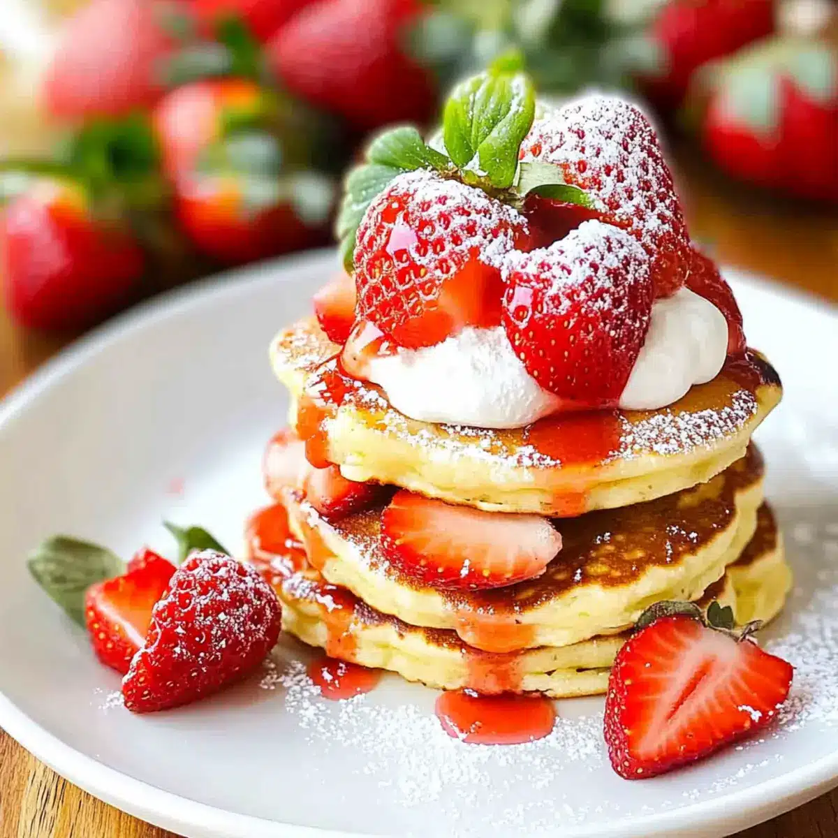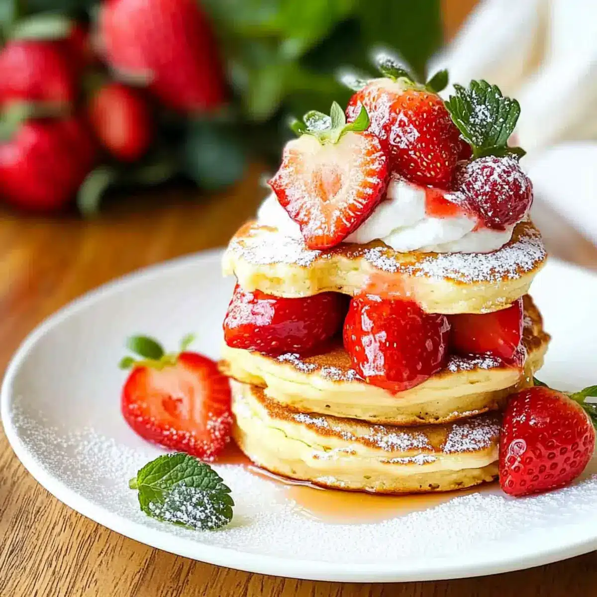 Citrus Zing: Incorporate a tablespoon of orange zest into the pancake batter for a burst of citrusy brightness. It pairs wonderfully with the strawberry topping!